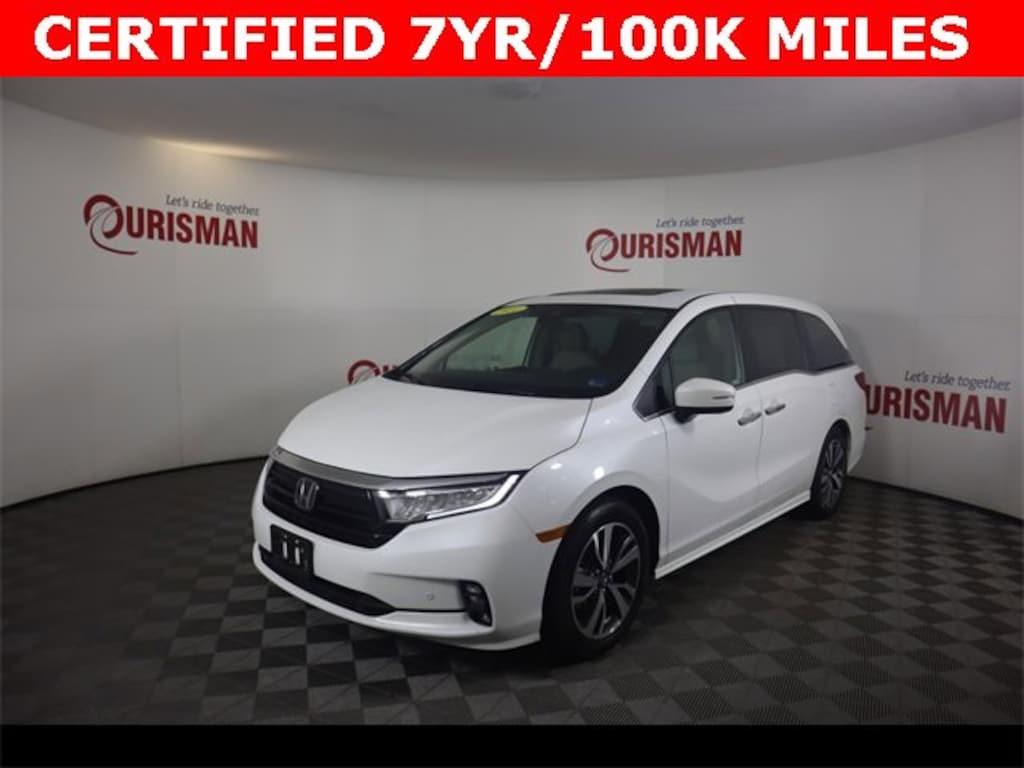 White 2021 Honda Odyssey Touring FWD 10-Speed Automatic 3.5L V6 SOHC i-VTEC 24V CARFAX One-Owner. CERTIFIED 7 YEAR/ 100,000 MILE WARRANTY.