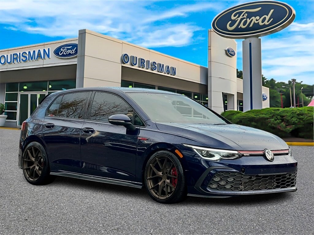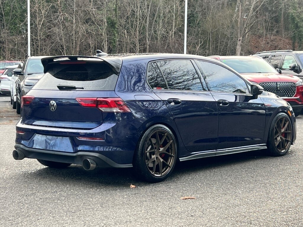 THIS LOOKS EVEN BETTER THAN IT ALREADY DID WITH A LITTLE TINT, SUSPENSION AND EXHAUST SOUNDING EVEN BETTER!! STILL UNDER FACTORY WARRANTY!!!, LOCAL TRADE-IN, 1 OWNER CARFAX, CLEAN CARFAX, GREAT GAS MILEAGE, TRACTION CONTROL, PANORAMIC SUNROOF, NAVIGATION SYSTEM, PREMIUM AUDIO SYSTEM W/ USB PORT, SIRIUS SATELLITE RADIO, LEATHER STEERING WHEEL W/ AUDIO & CRUISE CONTROL, BACK-UP CAMERA, REVERSE SENSING SYSTEM, POWER WINDOWS, LOCKS & MIRRORS, POWER SEATS, HEATED LEATHER SEATS, INTELLIGENT ACCESS W/ PUSH BUTTON START, FOG LIGHTS, DUAL DIGITAL AUTO CLIMATE CONTROL, Golf GTI 2.0T SE, 2.0L TSI DOHC, 7-Speed DSG Automatic with Tiptronic, Atlantic Blue Metallic, Titan Black w/Perforated Vienna Leather Seating Surfaces, 9 Speakers, Auto-dimming Rear-View mirror, Front anti-roll bar, Fully automatic headlights, harman/kardon® Speakers, Heated door mirrors, Heated steering wheel, Leather steering wheel, Radio: MIB3 Discover Pro w/10" Touchscreen Navi, Rain sensing wipers, Rear anti-roll bar, Tachometer, Telescoping steering wheel, Tilt steering wheel, Turn signal indicator mirrors, Wheels: 18" 2-Tone Machined Alloy. Atlantic Blue Metallic